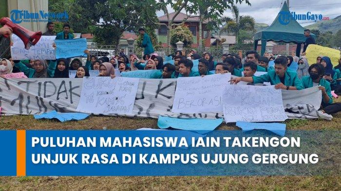 Puluhan mahasiswa dari Institut Agama Islam Negeri (IAIN) Takengon menggelar unjuk rasa di area kampus Ujung Gergung pada hari ini, Rabu (30/8/2023).